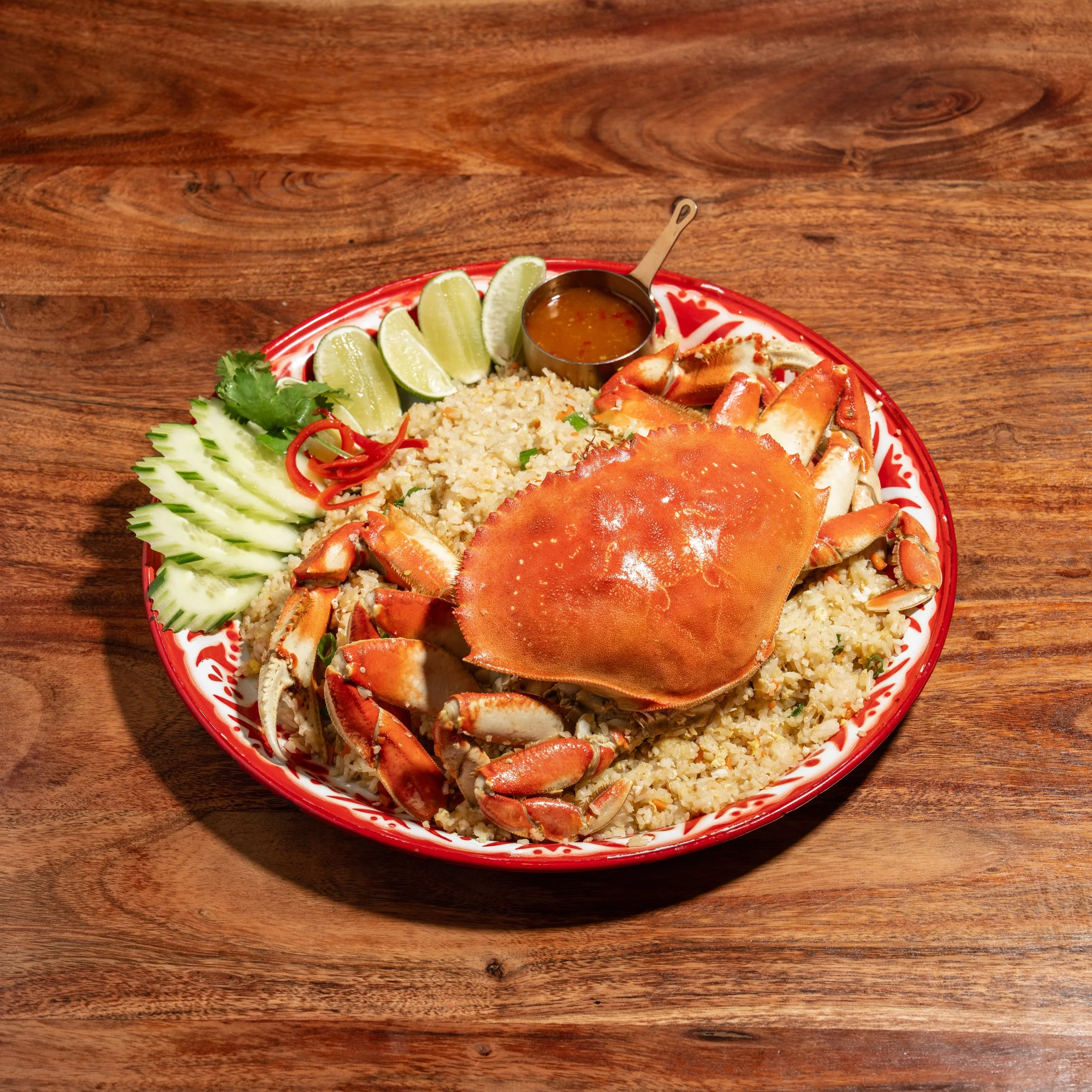 Fragrant jasmine rice wok-fried with fresh Vancouver crab, eggs, and scallions. a comforting Thai classic with a premium twist.